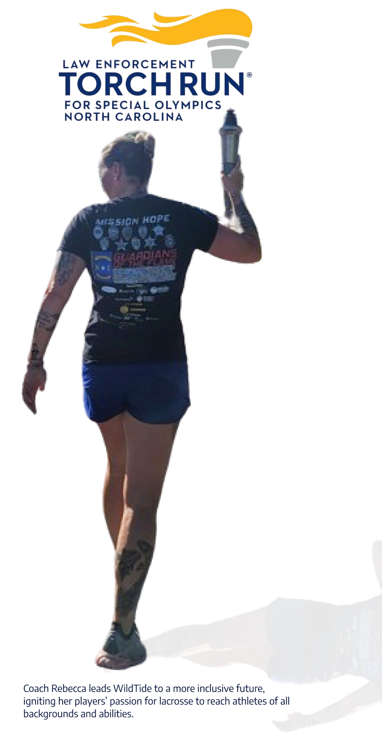 Wild Tide Girls founding member, Women's Director, and High School Head Coach Rebecca Allen serves on the State Council for the Law Enforcement Torch Run, and is the Torch Run Coordinator for Brunswick County.